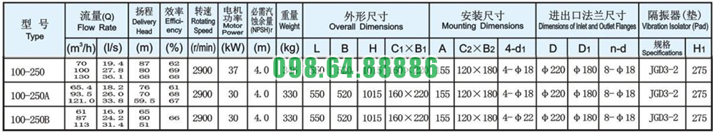 ISG100-250: vỏ gang bạc, cánh gang cầu/đồng (nước sạch).