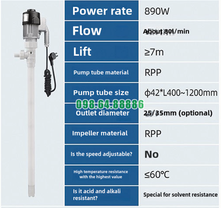 Độ rung thấp giúp tăng tuổi thọ Máy bơm chất lỏng cắm trực tiếp chống cháy nổ JDT-EX890W-RPP