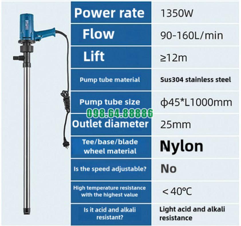 Bơm chuyển dầu thùng phuy JDT-1350W-SUS304N