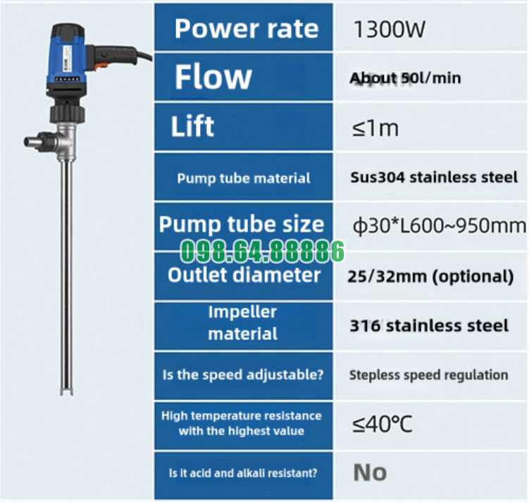 Cấu trúc cánh quạt của Bơm thùng phuy JDT-1300W-30 SUS304 được thiết kế phù hợp với các chất lỏng có độ nhớt vừa phải. Cánh quạt tạo lực đẩy đủ mạnh để bơm chất lỏng ổn định mà không gây quá tải cho động cơ, đồng thời vẫn đảm bảo an toàn trong quá trình sử dụng.
