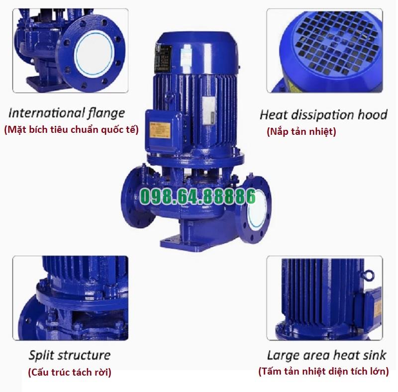 Máy bơm inline, bơm đường ống, tăng áp ISG80-200A, IRG80-200A 11kw, 46.8m3, 44m